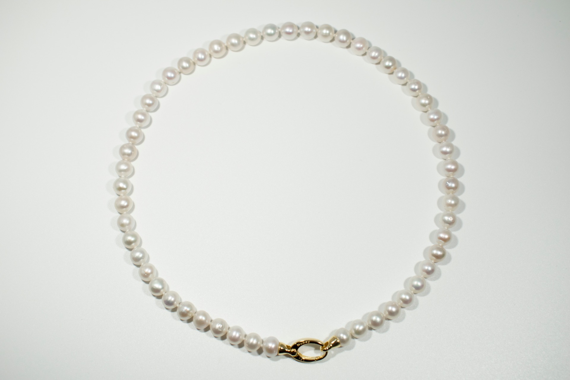 Collar de perla cultivada con un diámetro de 46cm y perla 8mm y broche en plata de ley con baño de oro
