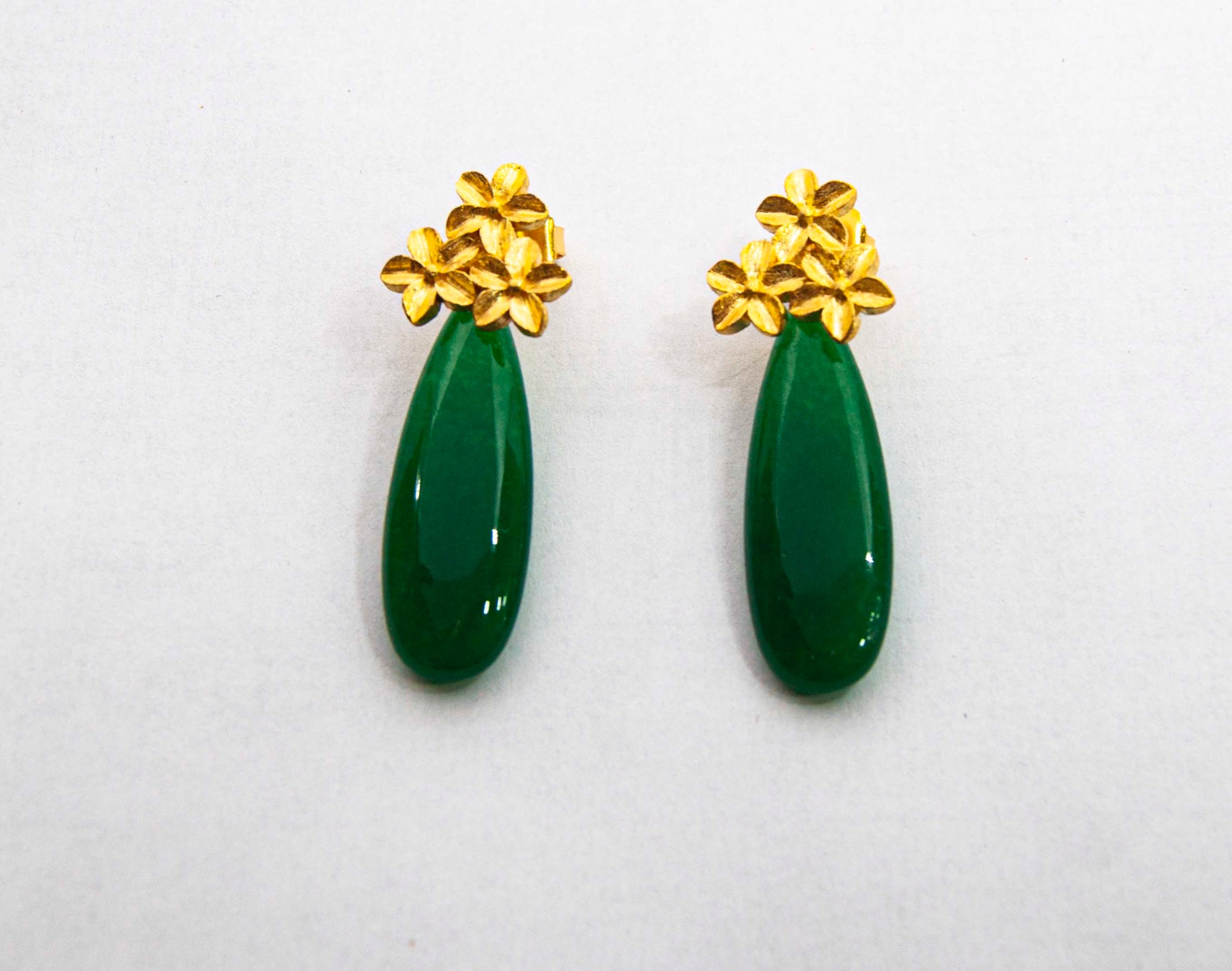 Con un largo de 5cm coronado con tres flores de azahar en plata de ley con un baño de oro y cierre con presión.