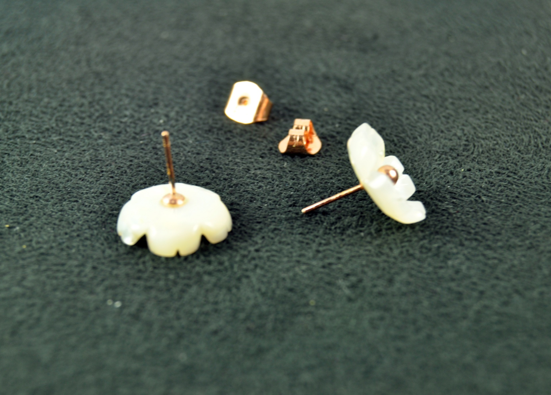 Pendiente de nácar con forma de flor del nácar engastado en plata de ley con baño de oro y cierre a presión un tamaño de 15 mm