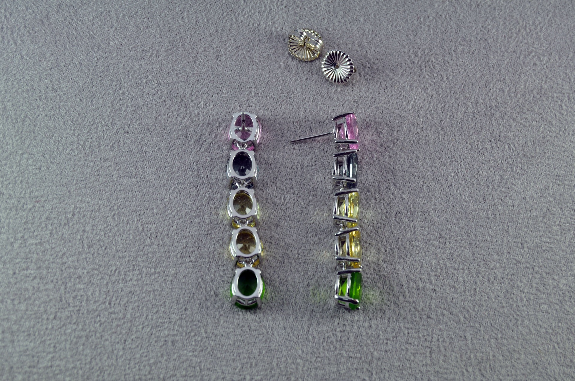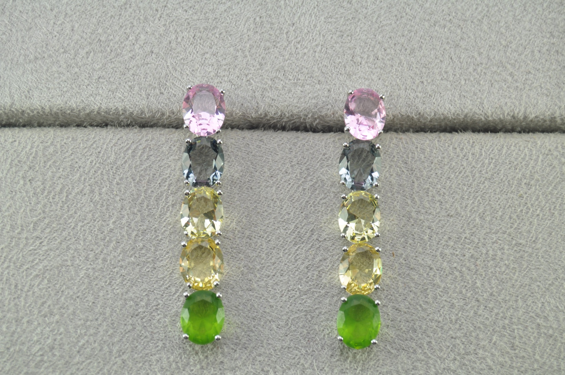 Pendiente fiesta con un largo de 5,5 cm engastado en plata de ley rodiada con 5 circonita y cierre a presión